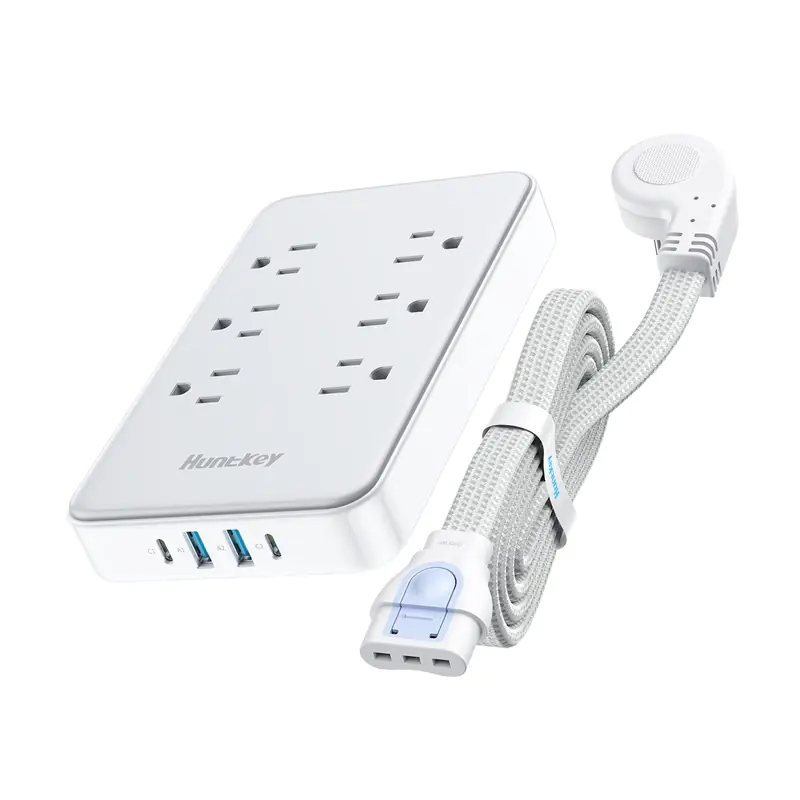 One of the standout features of the Huntkey Easycombo is its versatile detachable extension cords. Users can swap between 4ft, 10ft, and 16ft flat cables, making it ideal for different setups at home, in the office, or on the go. They have engineered the strip with wide-spaced AC outlets, allowing bulky plugs to fit side by side without crowding. This thoughtful design ensures that even multiple devices can be connected simultaneously without creating clutter or interference.